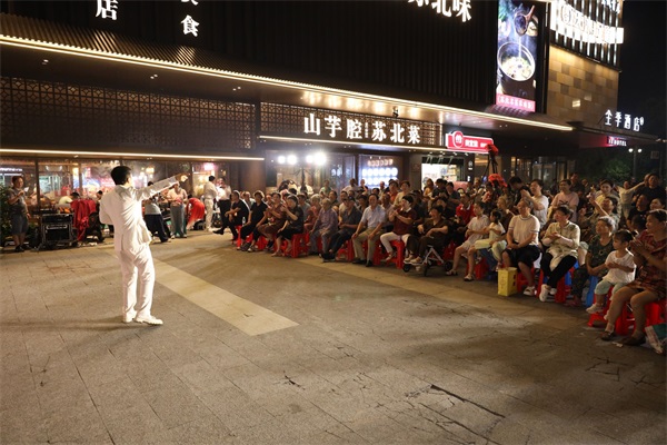 “瀆上·老西門(mén)”新時(shí)代文明實(shí)踐街區(qū)自開(kāi)街以來(lái)一直是市民們享受夜間文化生活的新潮聚集地。入夏后,鹽都區(qū)精準(zhǔn)對(duì)接群眾需求,因地制宜組織了一系列高顏值、高品位、高質(zhì)量的夜間文明實(shí)踐活動(dòng)。“登瀛老茶館”安排了各類經(jīng)典劇目,讓喜歡傳統(tǒng)戲曲的群眾過(guò)足癮;露天劇場(chǎng)喚起大家童年美好記憶,同時(shí)展示了中國(guó)幾代人拼搏奮斗的記憶;騰飛書(shū)局擁有豐富的閱讀資源開(kāi)展全民閱讀,積極打造本地文化名片。