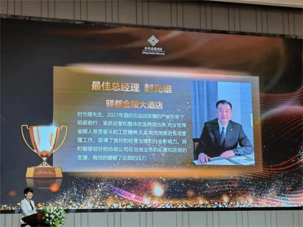 會(huì)議通報(bào)了金陵連鎖各成員酒店2022年上半年經(jīng)營(yíng)管理情況,現(xiàn)場(chǎng)簽訂總經(jīng)理目標(biāo)責(zé)任書、廉政承諾書。會(huì)議公布各項(xiàng)評(píng)比獲獎(jiǎng)名單并進(jìn)行頒獎(jiǎng),驛都大酒店總經(jīng)理封光雄榮獲金陵連鎖酒店最佳總經(jīng)理、客房部徐紅琴榮獲金花飛揚(yáng)最佳客房服務(wù)員、驛都大酒店在2022年度金陵連鎖酒店“尊享金陵”6.18大促活動(dòng)中獲得綜合業(yè)績(jī)第三名。
