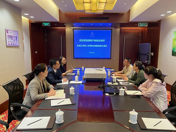 8月29日下午,鹽城工學院人文社會科學學院酒店管理系劉鵬、葛江徽等老師來到驛都大酒店就產(chǎn)教融合開展座談與實地調(diào)研,酒店人力資源總監(jiān)蔡秀霞、房務(wù)總監(jiān)唐家奎、餐飲總監(jiān)蔡萍參加了調(diào)研交流活動。