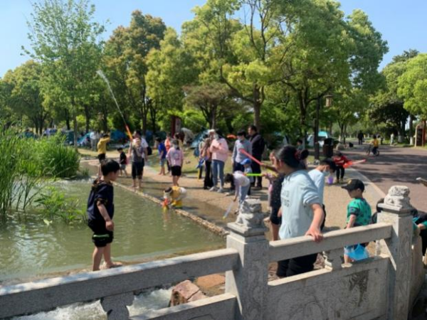 園內(nèi)游人如織,有的在遛娃、戲水、拍照,有的在群藝館觀摩字畫、參觀非遺展覽,有的在月亮廣場欣賞惠民演出,還有人在星空下拉起幕布觀看電影……優(yōu)美宜人的自然景色與豐富多彩的文化景觀為市民帶來了絕佳的出游體驗。