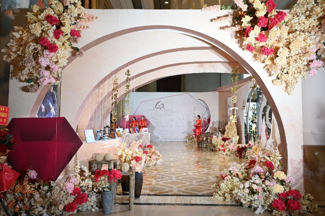 活動現(xiàn)場,一組組照片滿載著恩愛之情、感激之意和幸福之聲,記錄了這對恩愛夫婦的愛情故事,喚起了大家美好的回憶。酒店總經理封光雄送上紀念品和誠摯祝福,并與賓客一起合影紀念。特色禮物與互動活動既體現(xiàn)了酒店“細意濃情,體驗金陵”的經營理念,又增進了與賓客之間的情感聯(lián)系。驛都金陵大酒店將不斷創(chuàng)新進取,以精致服務為賓客提供獨特舒適的體驗,不斷提升酒店口碑和品牌形象。