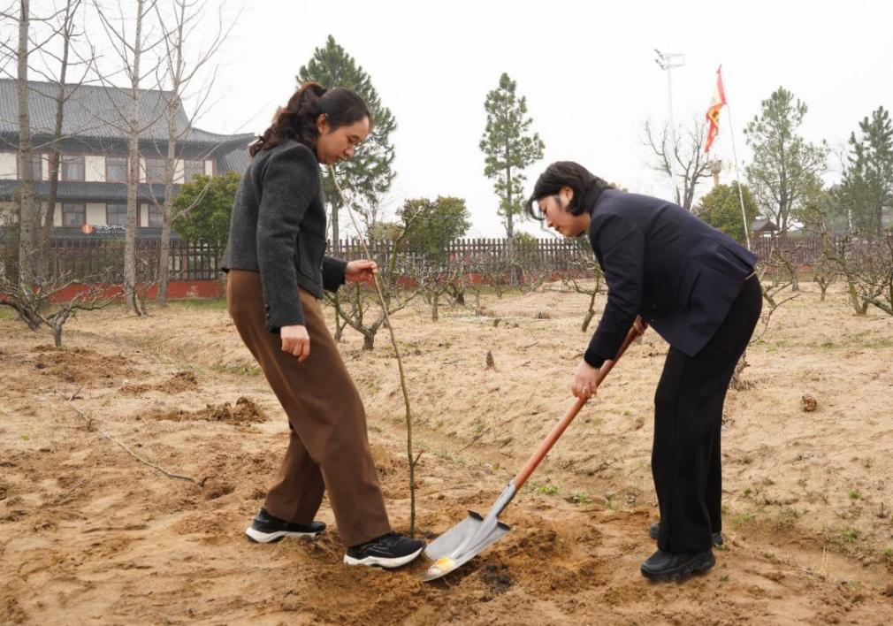 為積極踐行綠色發(fā)展理念,3月12日上午,城鎮(zhèn)化集團(tuán)與農(nóng)業(yè)發(fā)展銀行鹽都支行在龍岡桃花源成功舉辦“植此青綠 紅心向黨”植樹(shù)節(jié)活動(dòng)。農(nóng)業(yè)發(fā)展銀行鹽都支行行長(zhǎng)曹瑩,城鎮(zhèn)化集團(tuán)黨委副書(shū)記、總經(jīng)理?xiàng)钛?,副總?jīng)理陳衛(wèi)平等參加。活動(dòng)現(xiàn)場(chǎng),雙方分工協(xié)作、扶苗培土,共同栽下了由江蘇省農(nóng)科院·鹽城龍岡桃花源果品產(chǎn)業(yè)研究院精心培育的“蘇翠一號(hào)”梨樹(shù)苗。
