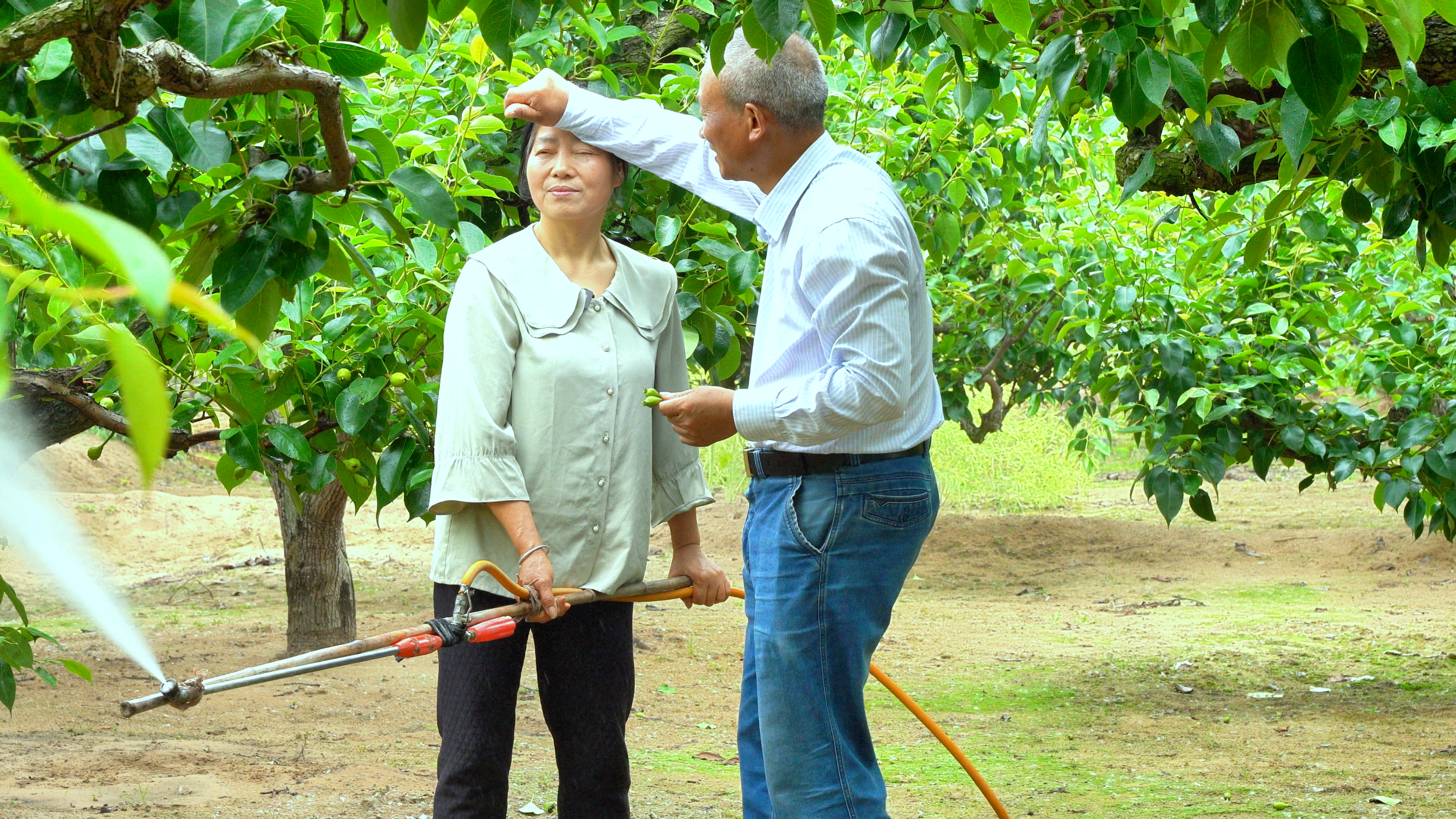 種梨快一輩子的王傳俊撫摸著梨樹(shù)上的歲月紋路,講述了三代農(nóng)人跨越半個(gè)世紀(jì)的傳承故事。五十八年前,他跟隨父親在沙岡上栽下第一株梨樹(shù)苗,那時(shí)沙地貧瘠,都用扁擔(dān)挑來(lái)兩里外的河水澆灌。五十八年來(lái),他與妻子用粗糙的雙手和堅(jiān)韌的毅力,讓這片龍岡桃花源從荒蕪走向繁榮,為景區(qū)的果品經(jīng)濟(jì)奠定了堅(jiān)實(shí)的基礎(chǔ)。梨想路旁枝葉相疊的永不分“梨”就是那時(shí)候種下的,如今連理枝的梨樹(shù)已成龍岡桃花源內(nèi)的必打卡點(diǎn)。而種梨四十年的許曉祥,既傳承了老一輩的勤勞與智慧,又積極引入一些新的種植技術(shù)和管理方法,帶領(lǐng)著龍岡桃花源走向更加廣闊的市場(chǎng)。近幾年,新加入的新農(nóng)人充滿了活力與激情,利用互聯(lián)網(wǎng)平臺(tái),為景區(qū)的果品宣傳推廣,拓展銷售渠道,他們用新思想和新理念,為龍岡桃花源的果品經(jīng)濟(jì)注入新的活力。